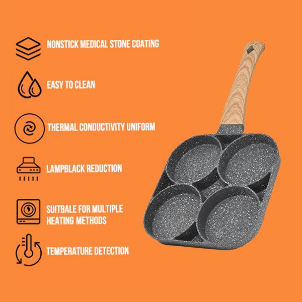 Predstavujeme vám našu 4-komorovú panvicu. Je to dokonalý doplnok do každej kuchyne! Táto vysokokvalitná panvica je navrhnutá na jednoduché varenie, pretože má nepriľnavý povrch. Vďaka tomu sa jedlo neprichytáva a panvica sa po varení ľahko čistí.