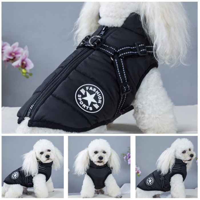 Konštrukcia postroja na zadnej strane je reflexná a nastaviteľná, môžete ho pripojiť k rôznym vodítkam pre psov. Nemusíte kupovať samostatne kabáty a podbradníky, pretože náš psí kabát poskytuje oboje. Napriek dobre zakrytej srsti nebude psom prekážať, keď si budú chcieť uľaviť a vykonať potrebu.