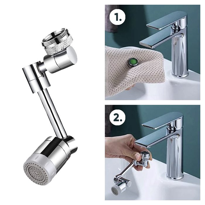 Náš 1080° otočný a sklopný nástavec na rozprašovaciu batériu je vhodný na použitie v kuchynskom dreze, pretože slúži flexibilnejšiemu umývaniu zeleniny, ovocia, riadu či rúk a dostane sa do všetkých kútov drezu, zatiaľ čo väčšina ostatných batérií nie. Je to veľmi užitočné pre deti, pretože niektoré majú problém dosiahnuť kohútik, aby si umyli ruky alebo tvár. Pri použití v umývadle v kúpeľni si ľahšie umyjete vlasy a tvár. Nástavec batérie s veľkým uhlom otáčania je zároveň pohodlnejší na čistenie celého drezu.