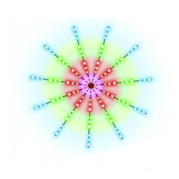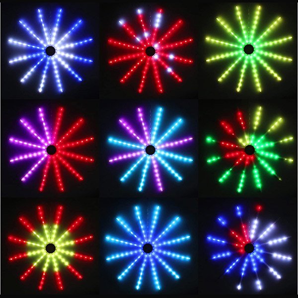Vzor ohňostroja sa skladá z 11 krátkych pásov a jedného dlhého pásu, po ktorých sa menia farby. Na týchto 11 pásoch je až 195 farebných LED svetiel, ktoré reagujú na rytmus hudby a zvuku. Prostredníctvom aplikácie a diaľkového ovládača si môžete aj sami vybrať hudbu, nastaviť až 16 miliónov farieb a nastaviť časovač, po ktorom sa blikanie vypne.