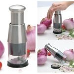 Sekáčik na cibuľu je bezpečne navrhnutý tak, aby držal ruky mimo čepele. Na krájanie zeleniny už nepotrebujete žiadne zručnosti s nožom, stačí stlačiť rukoväť. Vynikajúci dizajn navyše umožňuje vyhnúť sa možnosti porezať sa bežnými kuchynskými nožmi.