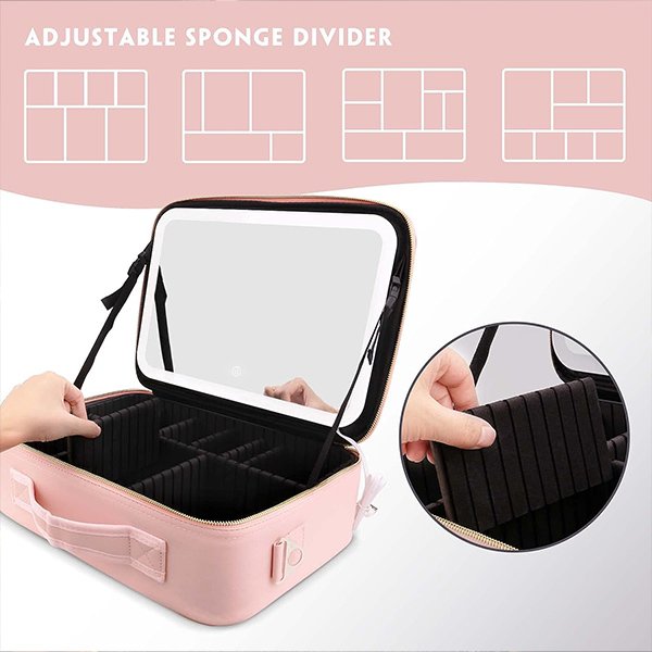 Kozmetický prípad s nastaviteľnými oddeleniami.