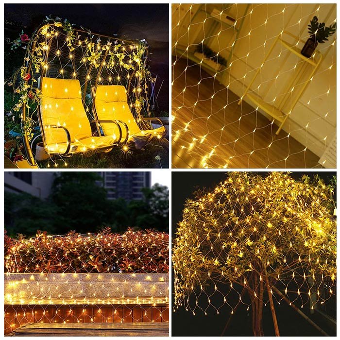 Sieťové svetlá sa pripájajú do zástrčky a na kábli je pripojený ovládač, pomocou ktorého môžete meniť úrovne blikania. Odporúča sa chrániť ovládač a zástrčku pred vniknutím vody pri daždi/snehu. Sú vyrobené z kvalitného PVC plastu, ktorý je odolný a pružný. Tieto svetlá tiež umožňujú spojiť až tri sady svetiel dohromady.