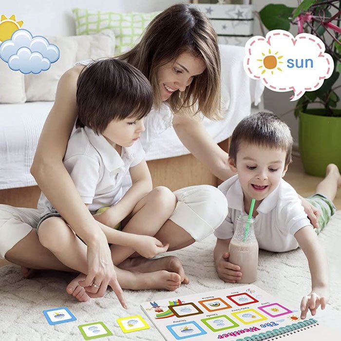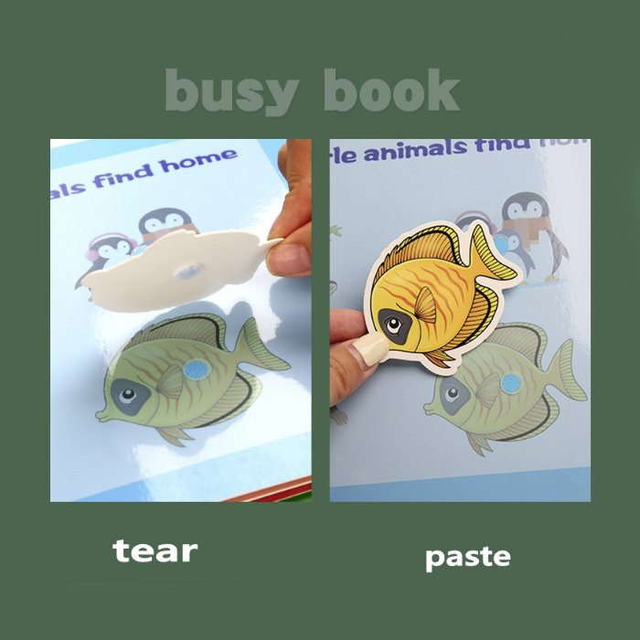 V knihe sú na určitých stranách úlohy, pomocou ktorých sa dieťa zoznamuje s číslami a na iných sú kartičky s odpoveďami, ktoré sa dajú presunúť do poľa s úlohami. Karty sú pripevnené ku knihe pomocou suchých zipsov, čo znamená, že sa dajú ľahko odlepiť a presunúť. Opakované lepenie a priraďovanie odpovedí k daným úlohám zlepší motoriku dieťaťa, zručnosť pri riešení problémov a trpezlivosť.