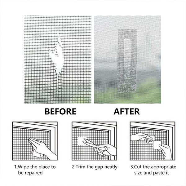 Ideálne pre vnútorné a vonkajšie použitie, ideálne na okamžité zakrytie dier. Naša opravná súprava je vhodná aj do prostredia s vysokou vlhkosťou; Opravte diery a trhliny v okenných sieťkach, stanových sieťkach, bazénoch, mrežiach na obytné autá a pod.
