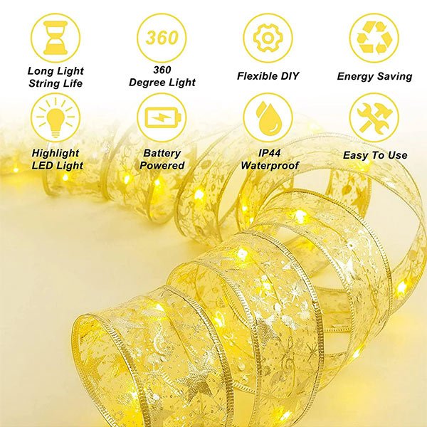Tieto stužky se svetlami možno omotať okolo stromčekov, zavesiť na zábradlie alebo použiť na vytvorenie oslnivých sviatočných expozícií.