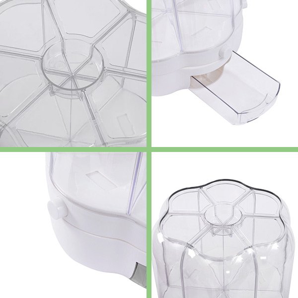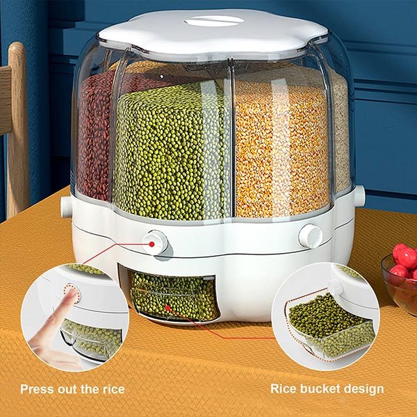 Naša 360° otočná nádoba na skladovanie potravín vám umožní jednoduchý prístup ku všetkým ingredienciám a ich usporiadanie, čím maximálne využijete priestor v kuchyni.