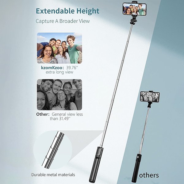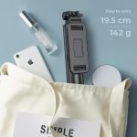 Vďaka svojej malej veľkosti a nízkej hmotnosti možno túto selfie tyč nosiť takmer v každej taške alebo batohu a vziať si ju kamkoľvek – je to skvelý spoločník na cestovanie, každodenný život a outdoorové aktivity. Vďaka vynikajúcej povrchovej úprave a ergonomickému dizajnu rukoväte je ideálnym darčekom pre vašich blízkych.