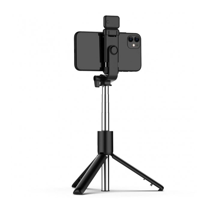 Selfie tyčový statív má tiež tlačidlo, ktoré funguje ako diaľkové ovládanie. Môžete ho odobrať zo stojana a ovládať fotografovanie a nahrávanie na diaľku. Stlačením tlačidla na 3 sekundy ho zapnete a spárujete so smartfónom. Bezdrôtový diaľkový ovládač by mal byť pripevnený k rukoväti pre režim selfie tyče alebo odstránený pre diaľkové použitie na statíve. Ovládať ho môžete až do vzdialenosti 10m.