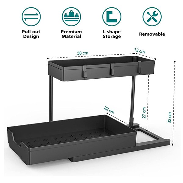 Udržujte vaše kuchynské, kúpeľňové alebo kancelárske potreby usporiadané s týmto univerzálnym organizérom. Jeho pevný dizajn zvládne rôzne položky, od hrncov a panvíc po čistiace prostriedky, zabezpečujúc, že všetko má svoje miesto.