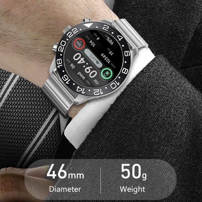 Smart hodinky sú precízne vyrobené z nehrdzavejúcej ocele a poskytujú jasný, citlivý displej s vysokým rozlíšením, okrem toho sa remienok z nehrdzavejúcej ocele pohodlne nosí. Dĺžku remienka si môžete prispôsobiť tak, aby sa hodil na každé zápästie. Batéria je výkonná a zaručuje dlhú životnosť hodiniek. Podporuje smartfóny so systémom iOS 10.0 alebo vyšším a Android 7.0 a vyšším