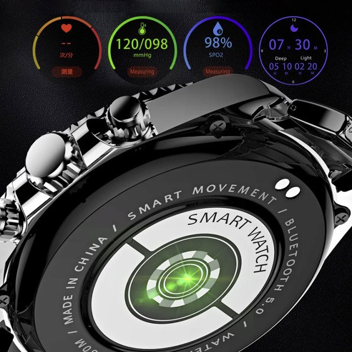 Smart hodinky sú precízne vyrobené z nehrdzavejúcej ocele a poskytujú jasný, citlivý displej s vysokým rozlíšením, okrem toho sa remienok z nehrdzavejúcej ocele pohodlne nosí. Dĺžku remienka si môžete prispôsobiť tak, aby sa hodil na každé zápästie. Batéria je výkonná a zaručuje dlhú životnosť hodiniek. Podporuje smartfóny so systémom iOS 10.0 alebo vyšším a Android 7.0 a vyšším