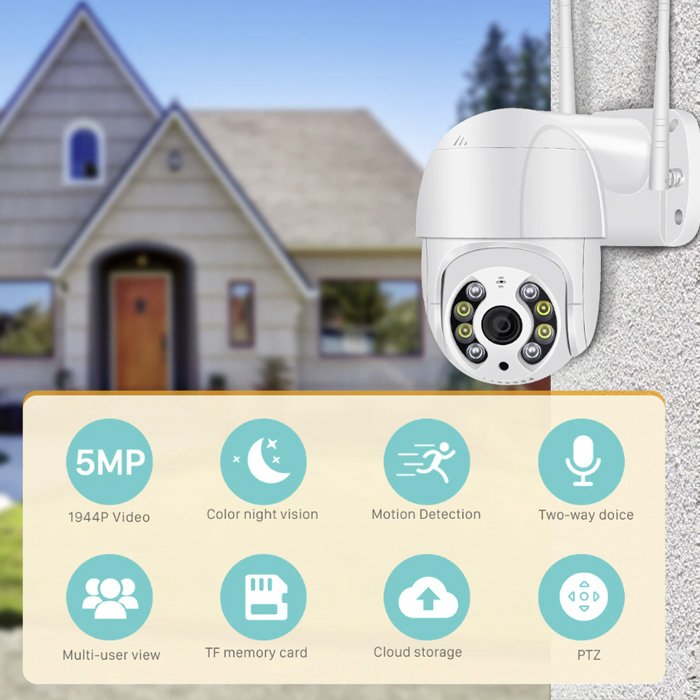 Wifikamera má zabudovaný systém, ktorý automaticky rozpozná nebezpečenstvo. Inteligentný systém nerozpozná malé zvieratá, poveternostné udalosti ani iné rušivé aktivity, takže falošné poplachy sa znížia o 95% a efektívne a rýchlo rozpozná ľudí a označí ich za nebezpečných. Automatické sledovanie tiež sleduje pohyb ľudí a upozorňuje vás. Pripojíte sa cez domácu wifi alebo kábel a najnovšia P2P technológia vám umožní sledovať živé vysielanie z vašej kamery.