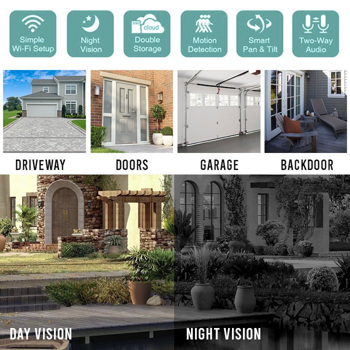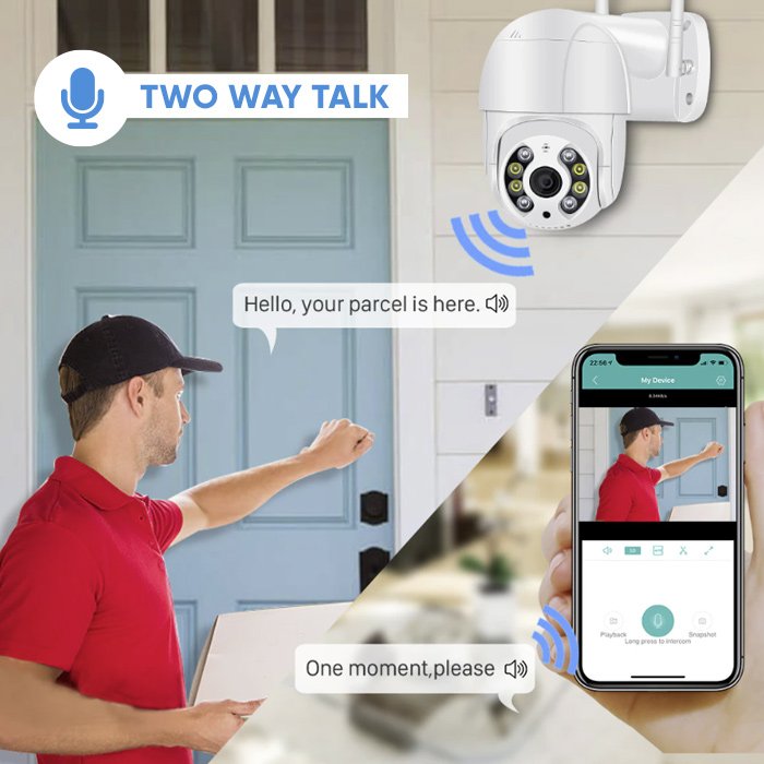 Kamera nahráva vo vysokej kvalite a obraz je čistý, takže ľahko rozlíšite, kto a čo je vo videu. Je tiež vybavený IR svetelnou kamerou, takže môžete jasne vidieť aj v noci. Vstavaný mikrofón a reproduktor vám umožňujú nahrávať zvuk, ako aj komunikovať s osobou alebo votrelcami a upozorniť ich.