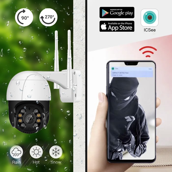 Ochranné puzdro IP66 zaisťuje fungovanie kamery aj v extrémnych poveternostných podmienkach, takže kamera bude efektívne fungovať aj v tých najťažších podmienkach. Kamera sa môže otáčať o 270 stupňov doľava a doprava a 90 stupňov vertikálne, čo jej umožňuje zachytiť každý roh okolo vášho domu.